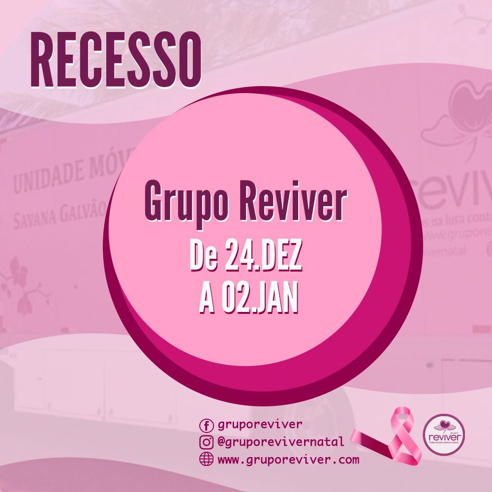 O Grupo Reviver entrará em recesso do dia 24.12.2021 ao dia 02.01.2022 – Retornaremos com a agenda em nossas redes sociais.